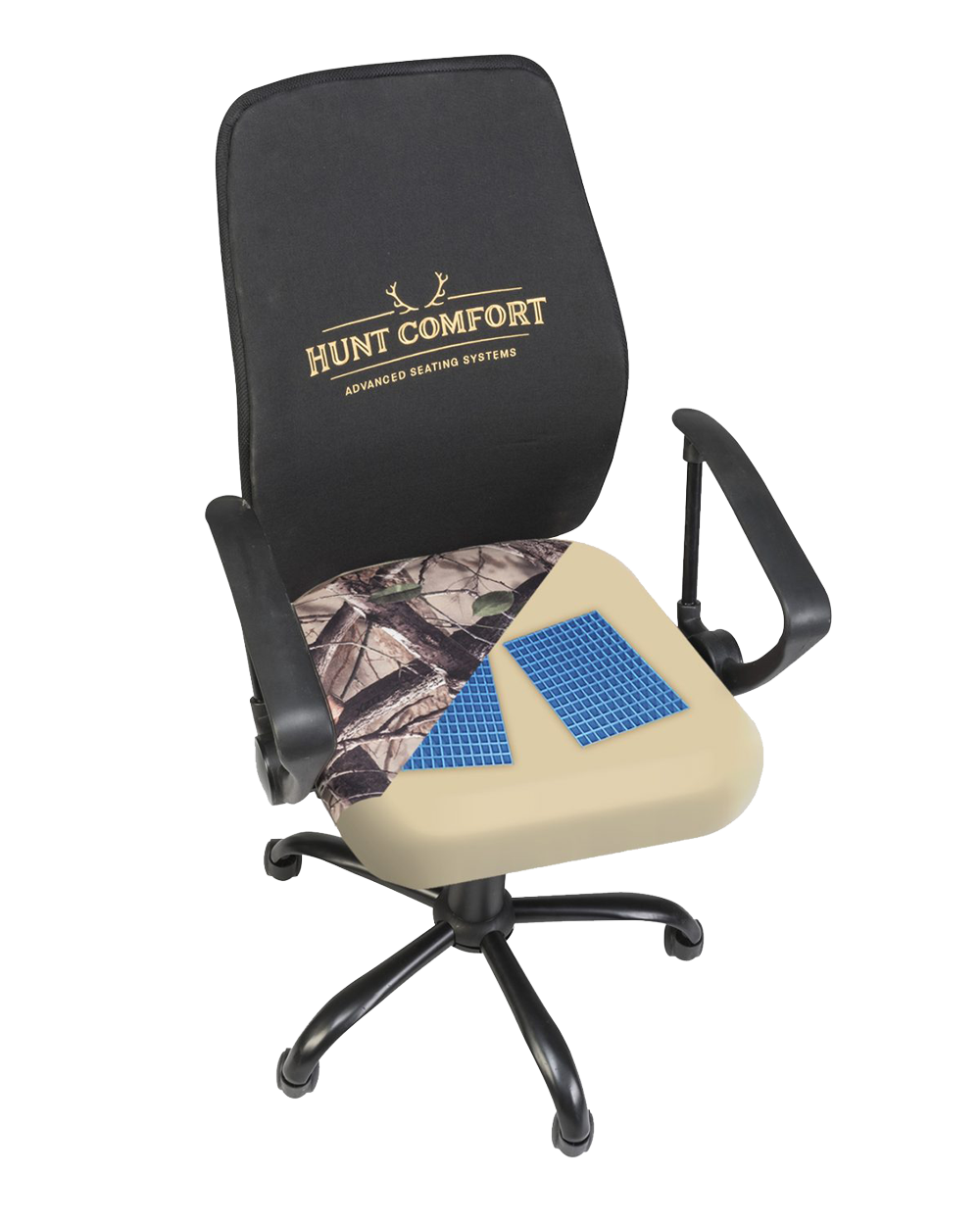 very best seat for all day comfort. Hunt Comfort created the state of the art solution by embedding gel pads in specialized polyurethane foam. The result is a remarkable level of comfort in a super portable seat. GelCore eases discomfort and helps relieve the fatigue of sitting still while hunting